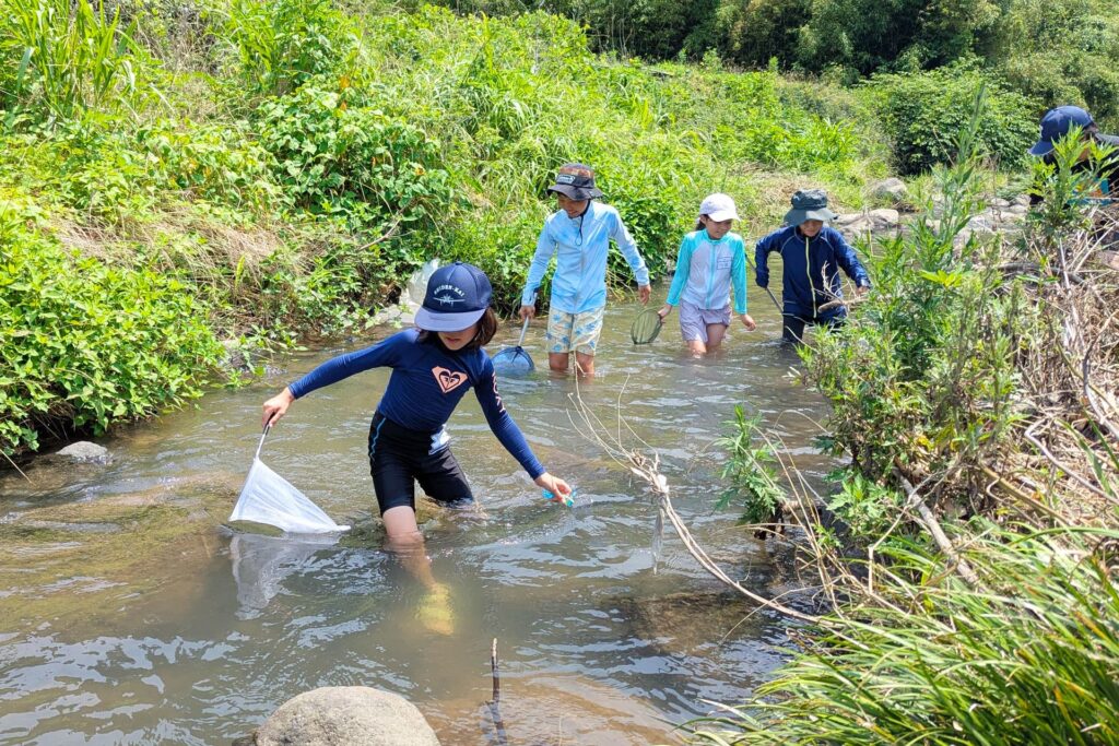 金峰山の麓に流れる河内川で川遊び!魚や虫を探してみたり、水遊びをして楽しもう!