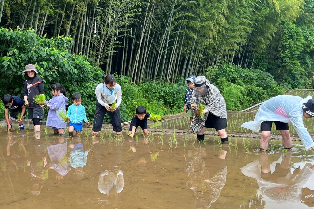 金峰山の麓で田植えを体験してみませんか?苗を自らの手で一つ一つ植え、美味しいお米を作りましょう!